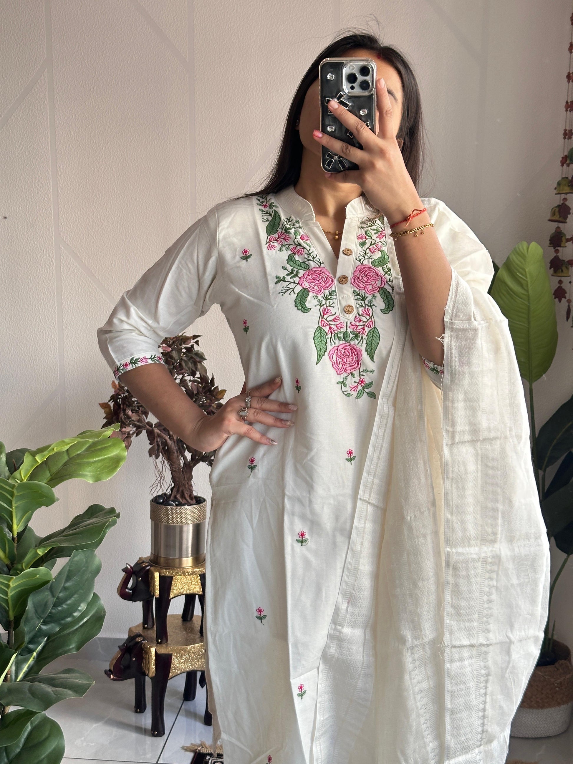 Chandni Aura -Premium Soft Cotton Embroidered Kurti Set