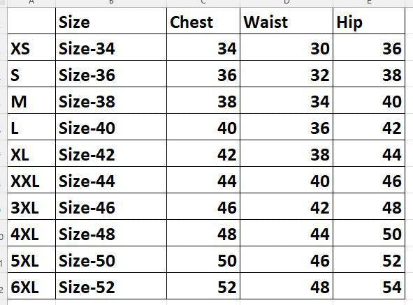 *3XL(46), 4XL(48), 5XL(50) & 6XL(52)*