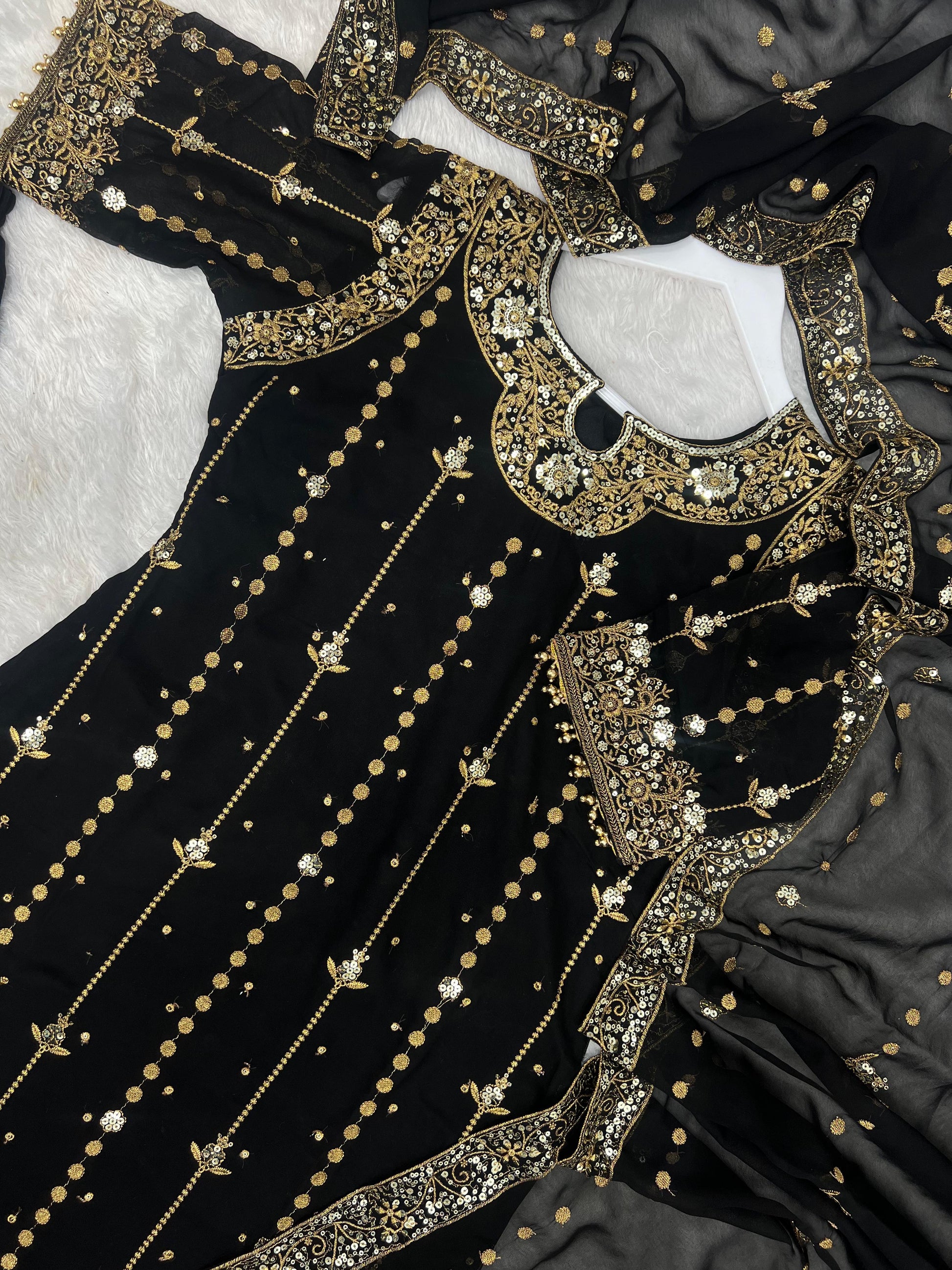 Riwaaz - Soft Georgette Gold Sequins Work Readymade Suit