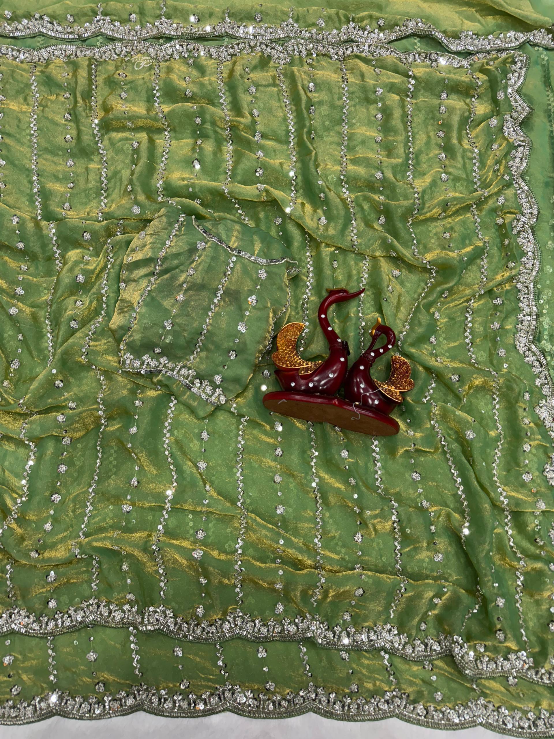 Party Star - Premium Space Silk Saree with Swaroski like crystal work with Fully Stitched Blouse
