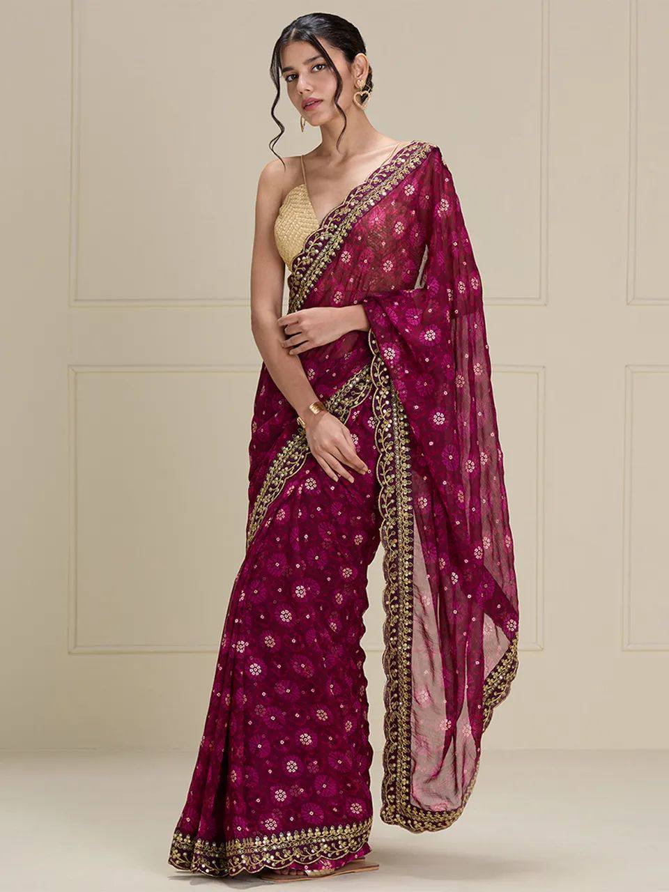 SAREES FABRIC.:- Saree Georgette chiffon with flower print with foil work