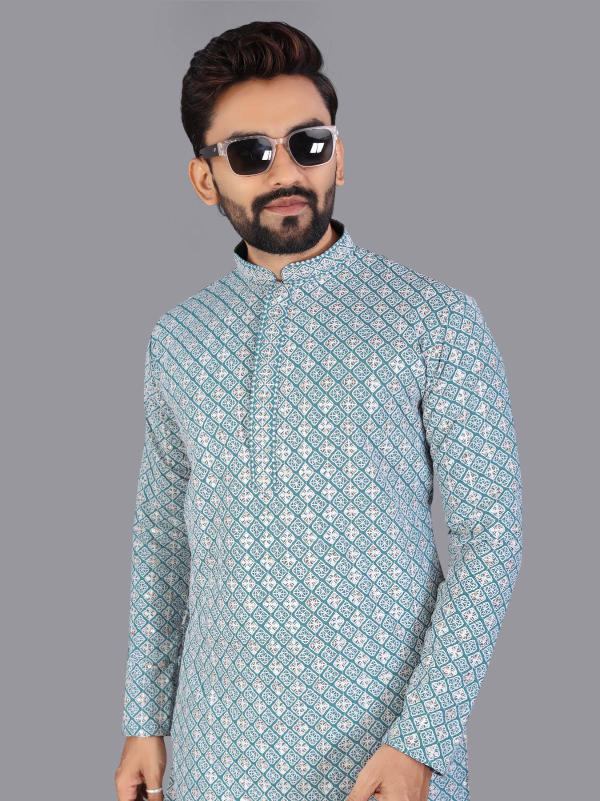 Utsav - Premium Lucknowi Work Rayon Cotton Men's Kurta with Pajama